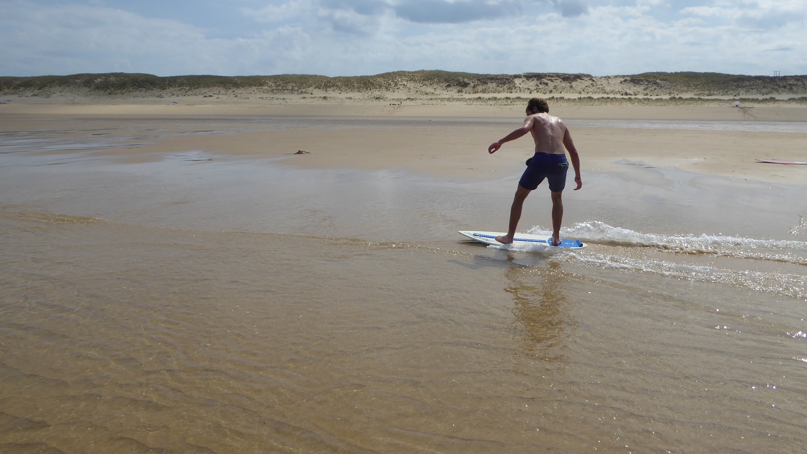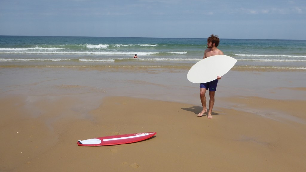Ensuite, eh bien au fur et à mesure que vous apprivoisez votre monture, amusez-vous à faire quelques figures en aquaplaning au bord de l’eau, c’est marrant et ça permet de bien apprendre les bases du Skimboard.