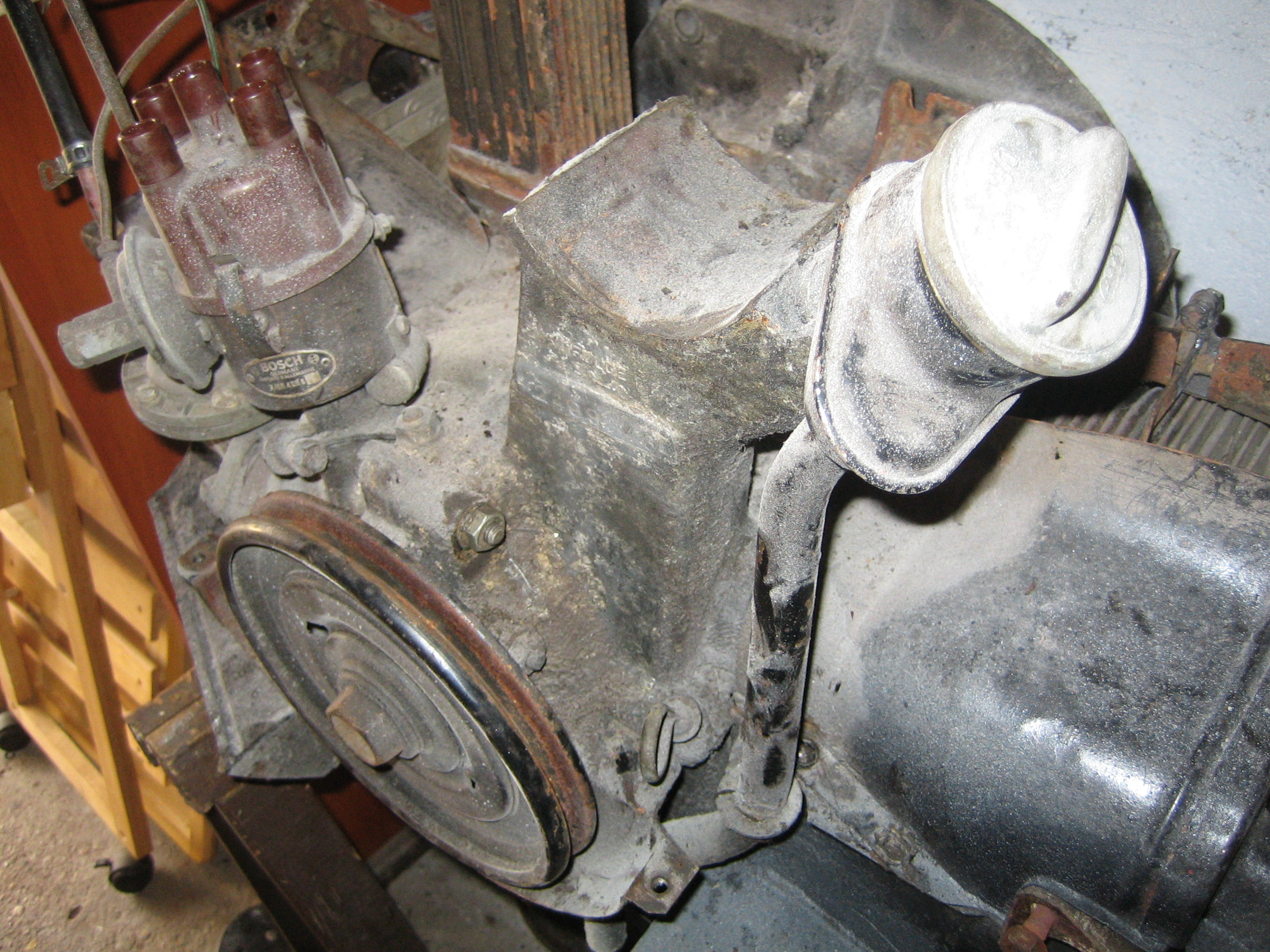 Commence alors la recherche d’un moteur complet et c’est au détour de la bourse d’échange de St Médard de Guyzière (Gironde) qui avait lieu 15 jours après le malheureux évènement que j’ai pu dénicher un moteur complet de la même année que la voiture.