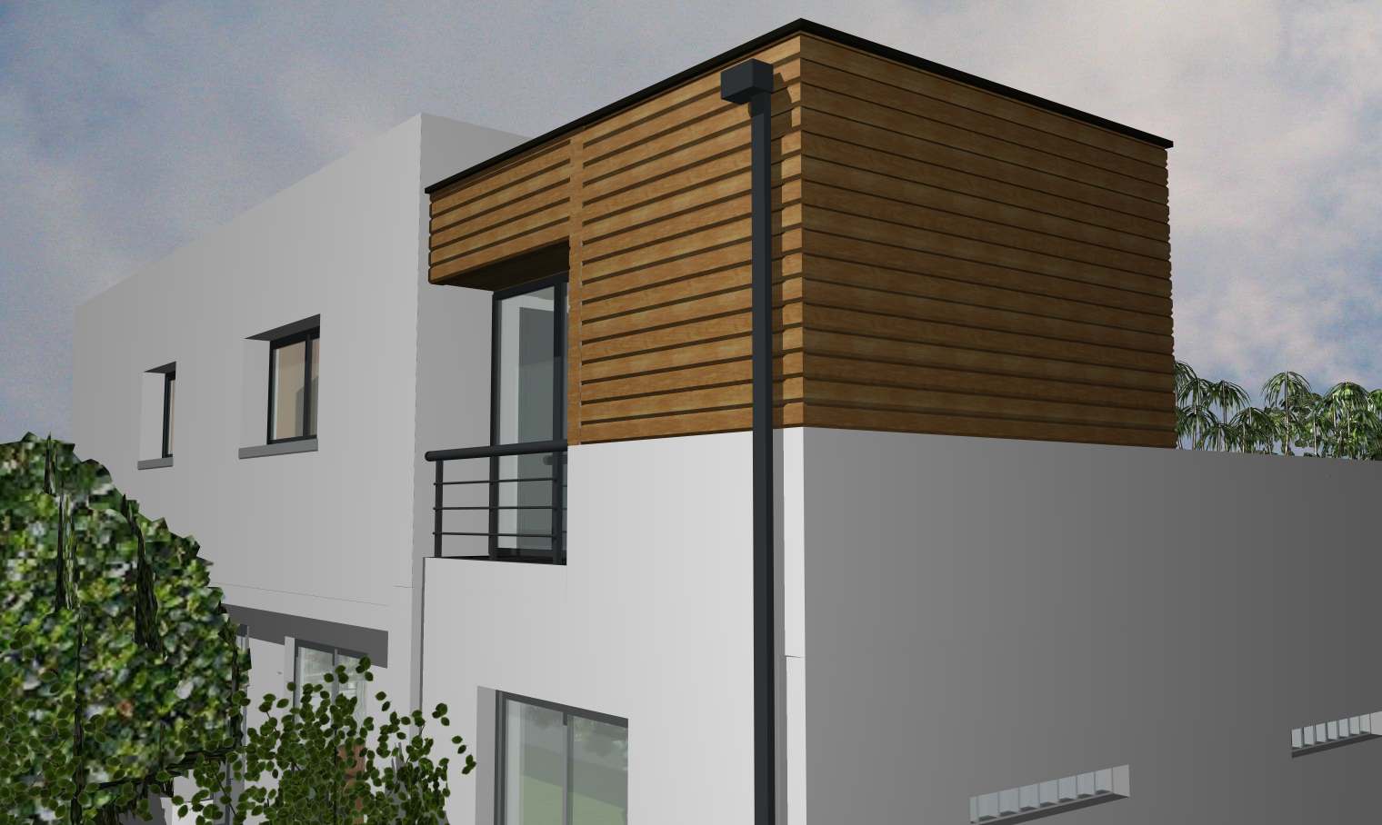 La famille s’agrandit et la terrasse laissera un peut de place à une chambre qui donnera sur le Salon.. Modélisation de l’extension.