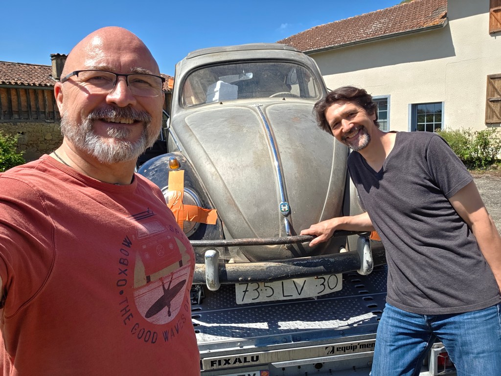 En effet, c’est en discutant avec le propriétaire du scooter Allemand, passionné et revendeur de pièces détachées de scooters Italiens, qu’il me dit avoir une coccinelle aussi dont il pense se séparer prochainement.. Après quelques échanges, la vente peut se faire.. Merci à lui pour sa confiance.