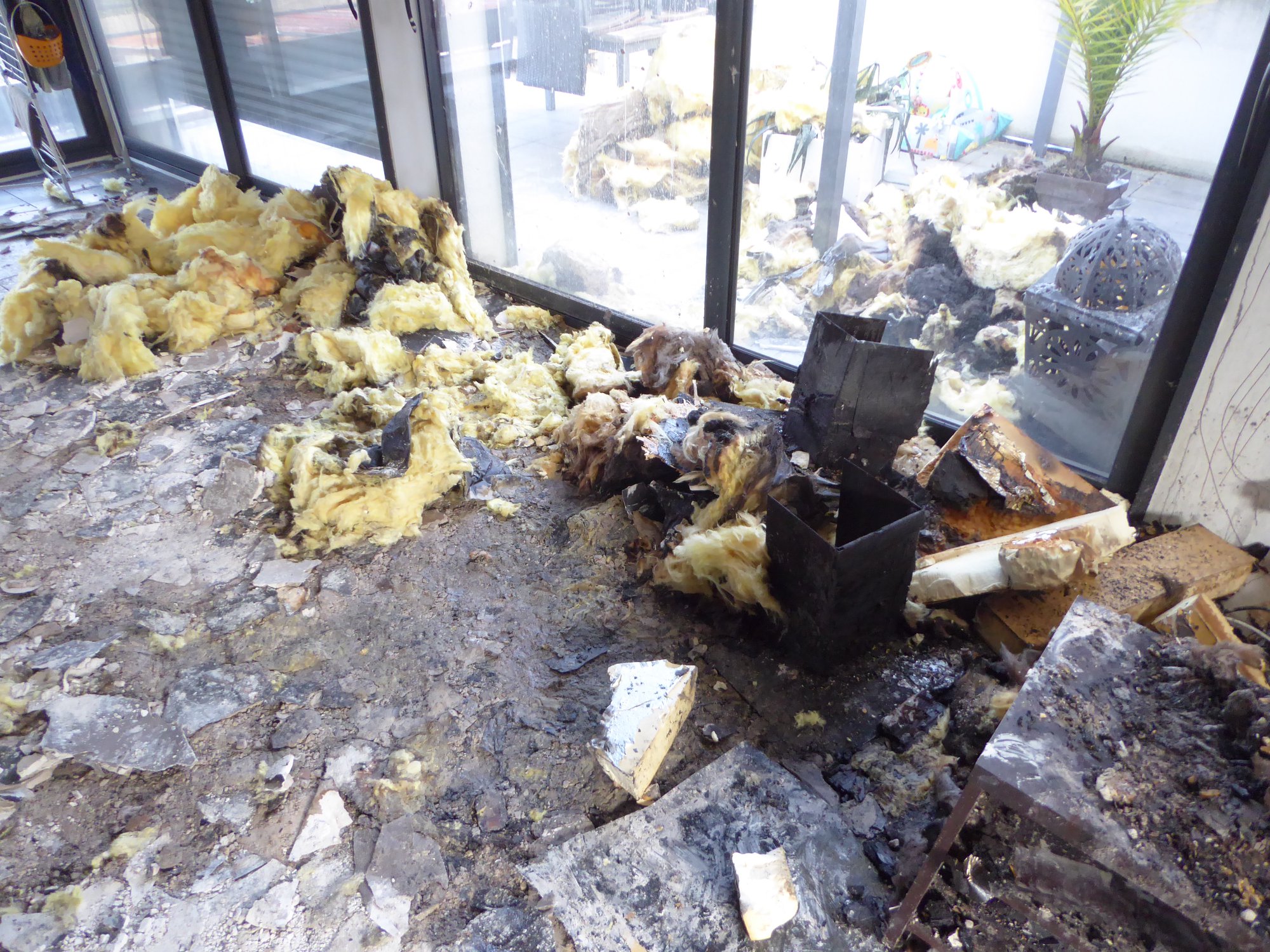 Tout semblait bien engagé, oui, jusqu’au jour où un incendie se déclare un beau matin à l’étage pendant que nous travaillons: une grande partie de la toiture est partie en fumée, nos deux chiens ont péris, tout ce que nous avions est sous les cendres ou la suie. Seul le Ré de chaussée est épargné. Un choc..
