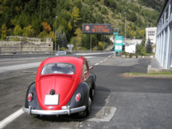 La plus grosse difficulté et grosse frayeur se produira vers Milan: 80 Km/h sur une 2 fois 4 voies, pleine nuit, pluie battante, des poids lourds partout, le moteur d’essuie-glace 6 Volts alimenté en 12 Volts n’a pas tenu bien longtemps. Perte totale de visibilité, le klaxon des poids lourds, je réduit ma vitesse et me base sur la distance entre la voiture et la barrière de sécurité droite. Les pires 30 minutes le temps de trouver une station. Après un petit contrôle du câblage sous un arbre à la lampe, le diagnostique est rendu: moteur HS. Je passe donc la nuit coincé par mes roues et mes affaires en position assise: aucuns risques de chuter..