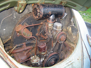 La carte Grise est en VW modifié, 2 places et seul le moteur est manquant. C’était sans compter la récupération d’un motopompe équipé d’un 1600 Volkswagen qui était stocké dans mon allée depuis longtemps avec le « on ne sait jamais »..!!!