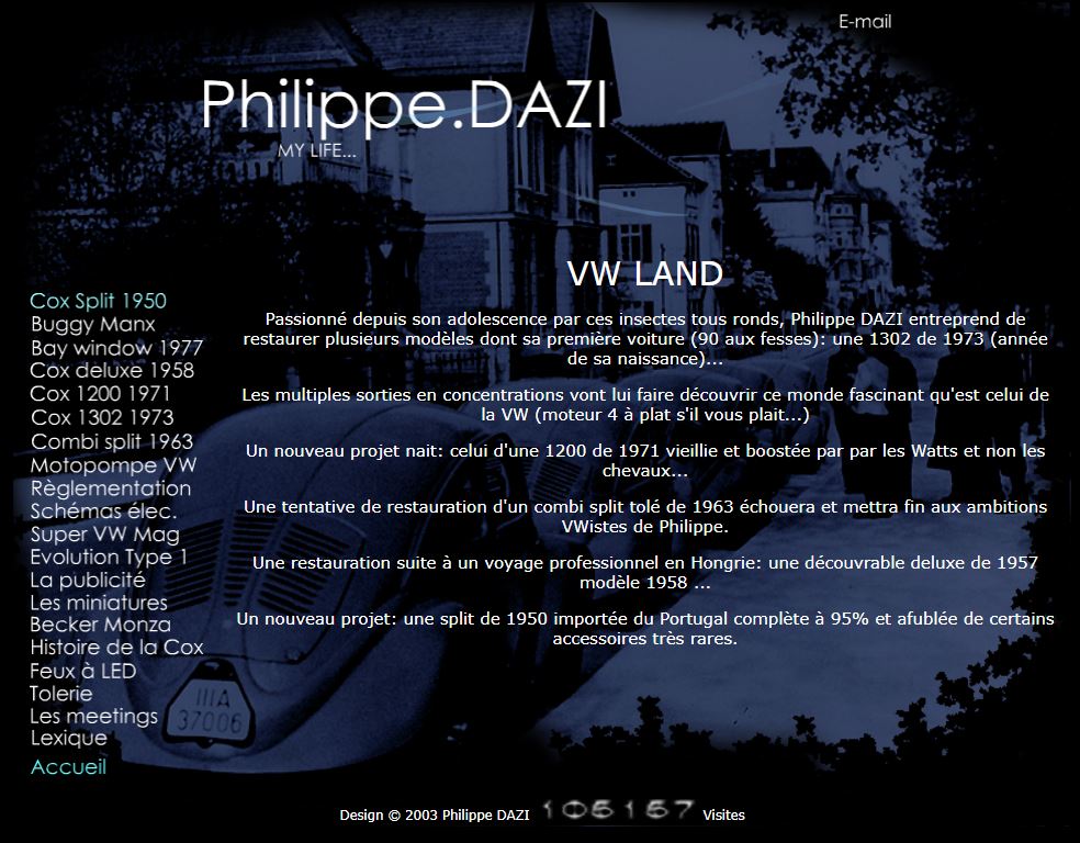 Tout semble bien être engagé: mon travail, bien que difficile, me plait et j’évolue dans la société avec beaucoup d’investissement personnel. La maison est juste comme je le souhaitai. J’ai une Cox Split de 1950 qui aura fait 10 pages dans le Super VW, un Buggy et Lucie son Combi. Nous donnons d’ailleurs naissance à notre petit garçon après avoir agrandit l’étage d’une chambre supplémentaire (encore des travaux que je réalise).