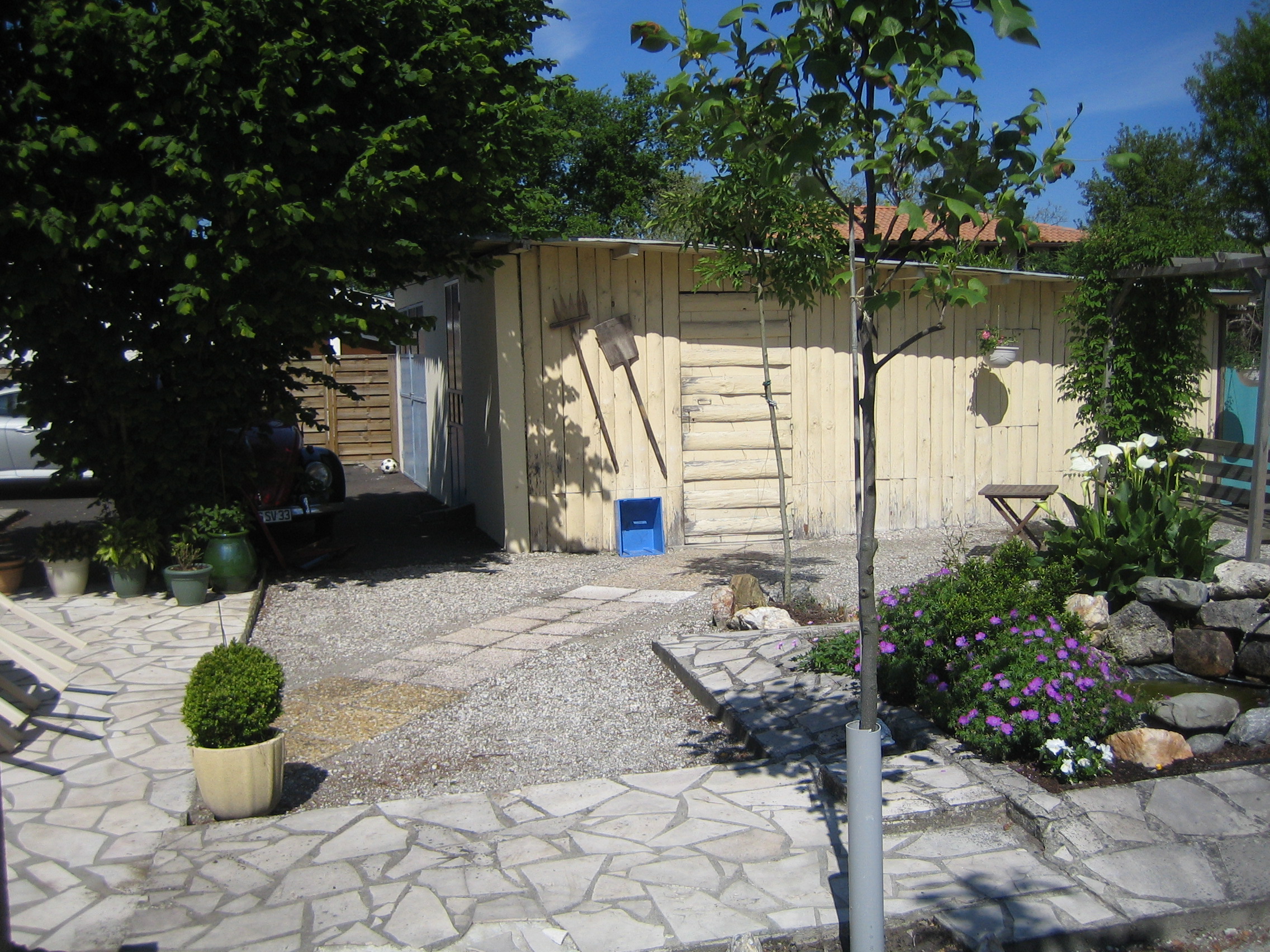 La maison avant les travaux. On la distingue facilement par son toit en tôle. Certes, pas de tuiles à changer mais très bruyant en temps de pluie et grêle..